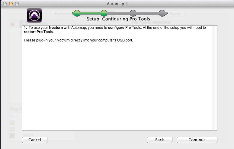 5.现在用USB线将Nocturn连接到电脑,进行Pro Tools设置。点击Continue(继续):