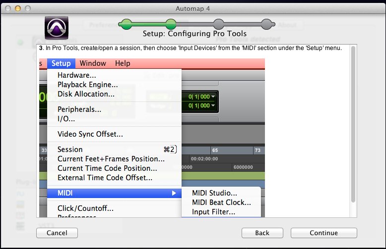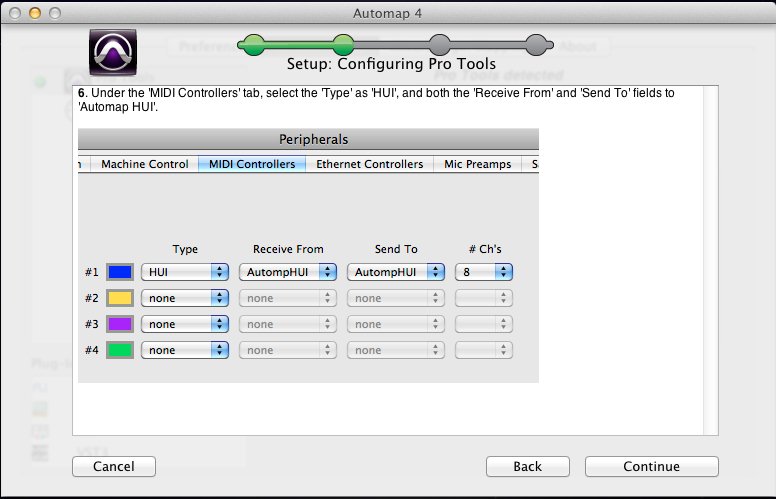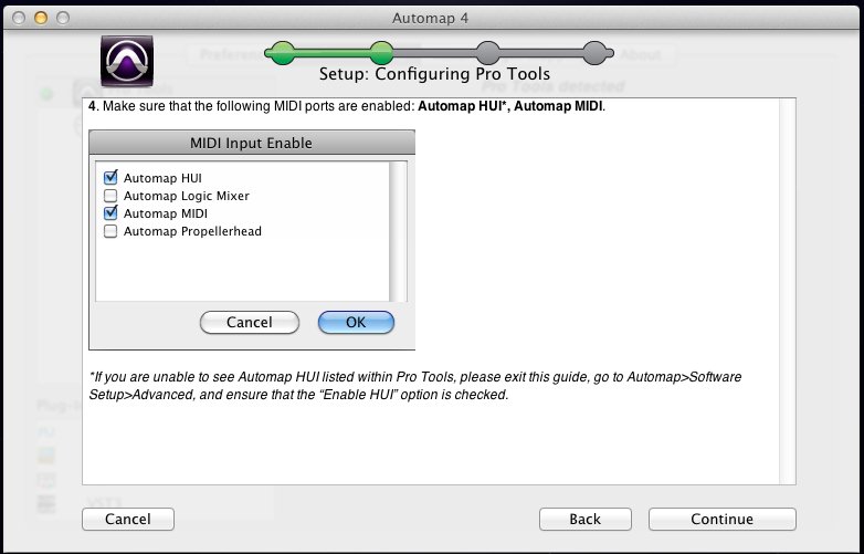 8.勾选Automap HUI和Automap MIDI,然后点击Continue(继续):