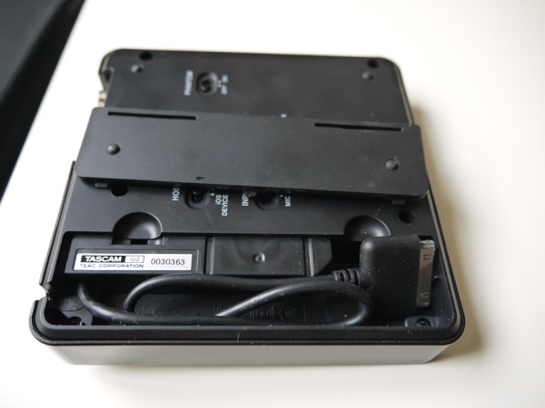 在将iU2的dock线连接到iPhone测试的时候,我发现了一个好消息和一个坏消息。好消息是这个dock接口是那种带保护的,不会因为用力就可以拔掉,而必须用两只手指夹住左右两侧才可以,可防止演出时出现事故。而坏消息是这个dock接口居然没画出正反面,这太?辶耍ㄈ缤?3),Tascam工程师难道不知道dock接口是分正反的吗?我必须自己手动制作一个贴纸贴到dock接口正面才可防止接反而插不进iPhone──而这是有50%概率的。