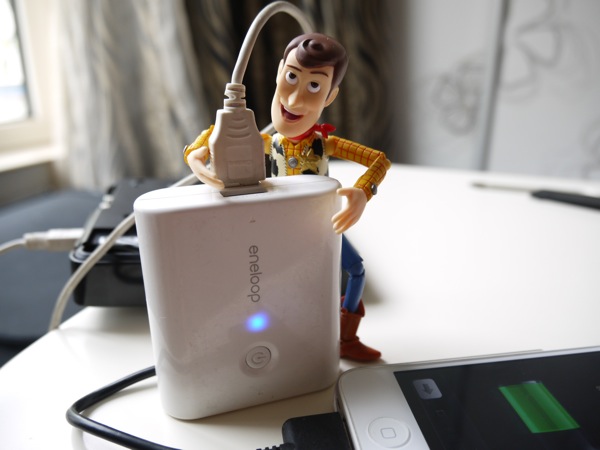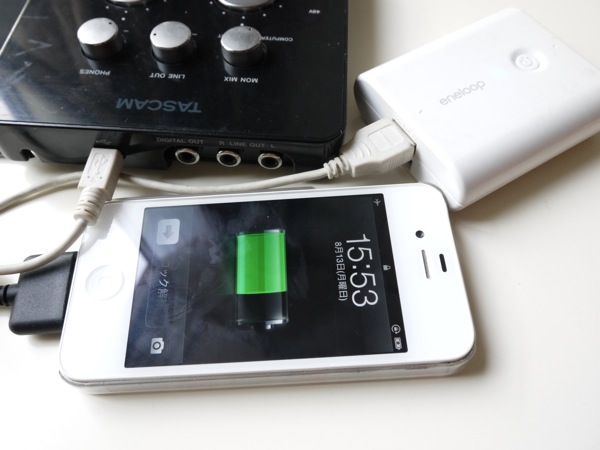 :在接iPhone 4S使用iU2的同时,通过eneloop移动电源给iPhone 4S充电