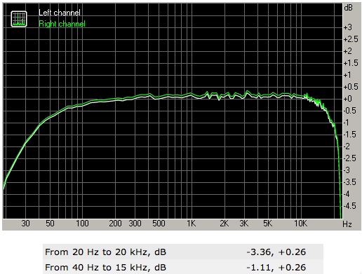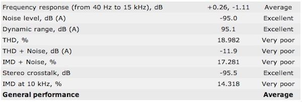 前面说过了,iU2最高只支持到16bit/48kHz精度,所以音质方面也基本是平民路线,不过95dB的动态也算不错的成绩了(如图16),就是频响曲线有些惨不忍睹(如图17)──人家本来也没自称是专业音频接口嘛。