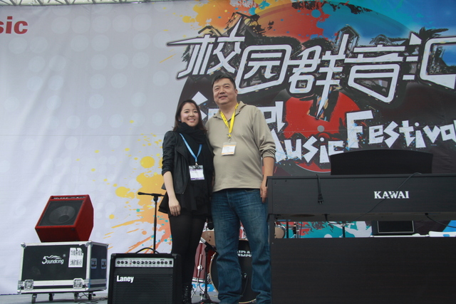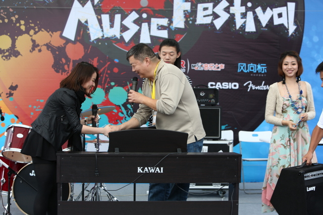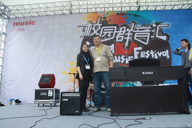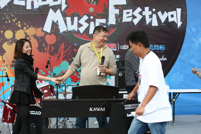 在此期间,有 “音雄争霸”、“人气乐队”、“音乐星势力”和“交相辉印”四个环节为大家送出。竞选出校园歌唱、乐器达人。一些校园乐队也来到现场倾情演出,很多观众为他们加油助威,现场气氛热烈!
