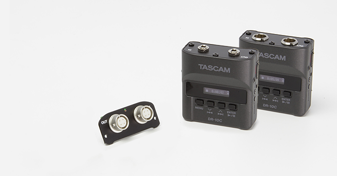 DR-10C SeriesDR-10C录音机可支持不同厂家的无线系统,连接到麦克风和发射机之间。连接麦克风到录音机和使用附带的线将它连接到发射器。这是一个作为备份录音机的完美配置 - 保证捕捉的音频信号不会被无线系统发送中断所影响。