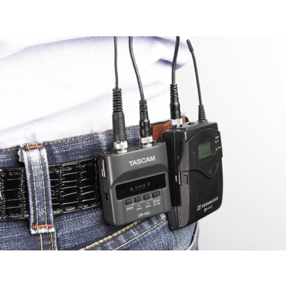 此小型、可配戴式的线性PCM录音机,用来录制从领夹式麦克风获取的音频。配合一个无线腰包系统,本设备可用作备份录音。