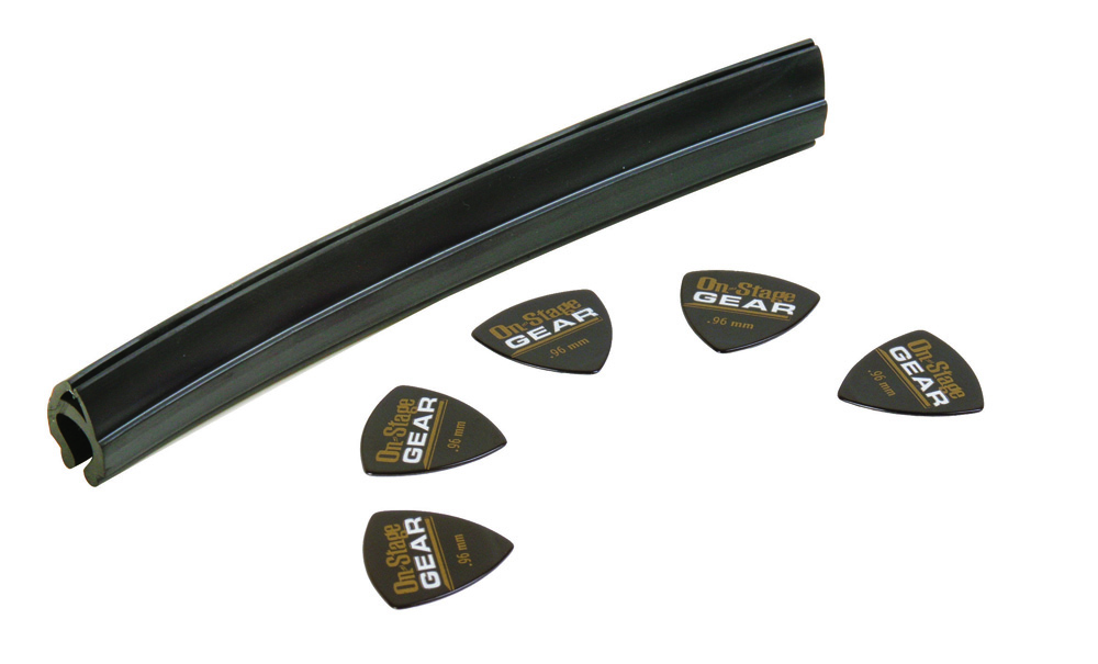 可装在任何的标准型唛克风支架或横杆上,柔韧而耐用的橡胶,18cm长,可同时放7个拨片,此产品包含6个拨片。