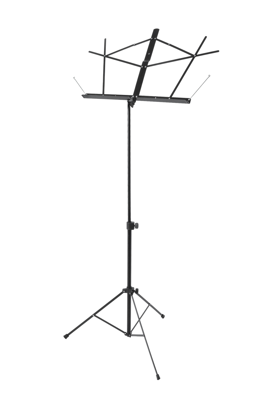 5060 SM7122B - 简约式活页乐谱支架) 美国经典的便于贮存的折叠设计,2节主轴带凸轮离合锁紧机构,三脚架折叠起来方便贮存,黑色表面。