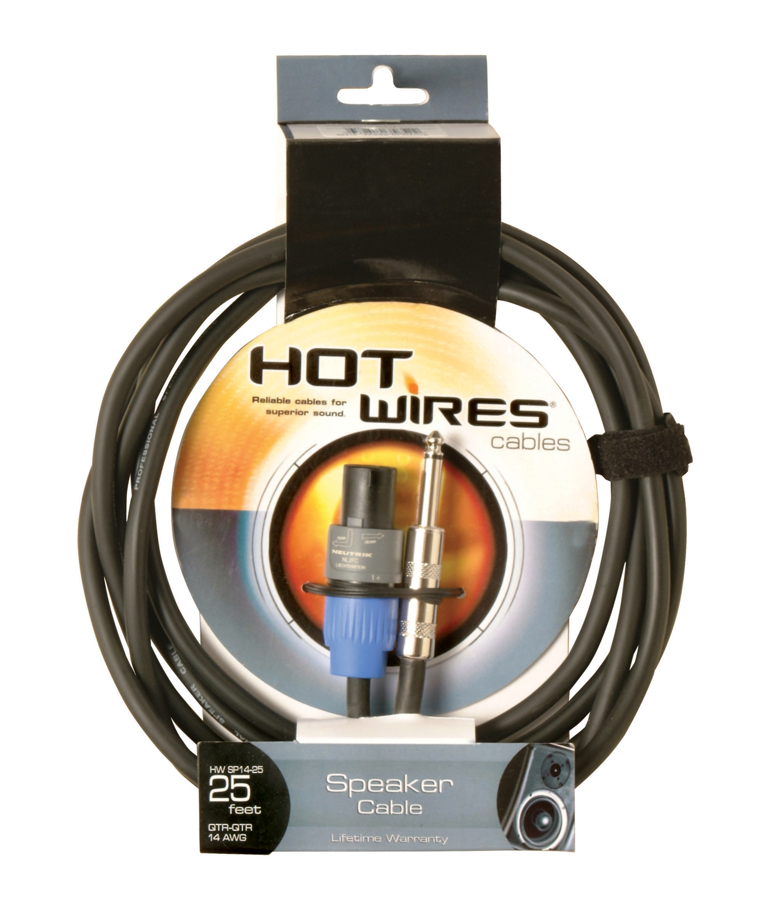 Twist-lock Speakon®-Speakon®连接头和Neutrik® NL2FC连接头连在14号线两头,用于大功率音箱,有多种长度。