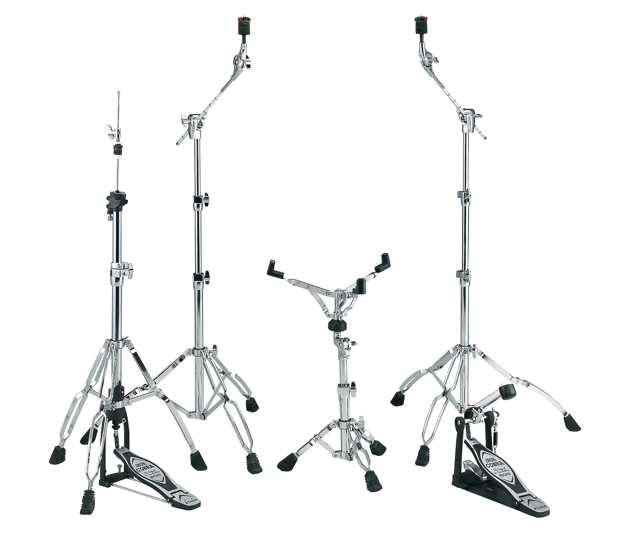 HS70W Roadpro军鼓架 HC73BWN Roadpro斜杆镲架(x2) HH605 Iron Cobra踩镲架 HP600D Iron Cobra Duo Glide单踩