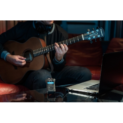 通过USB音频接口模式连接到PC,DR-07X立刻成为一款适用于配音工作、现场直播以及(具备录音室音质的)歌曲创作工作的强大而简单的装备。无需安装复杂的设置,即可将内置麦克风用作USB麦克风。