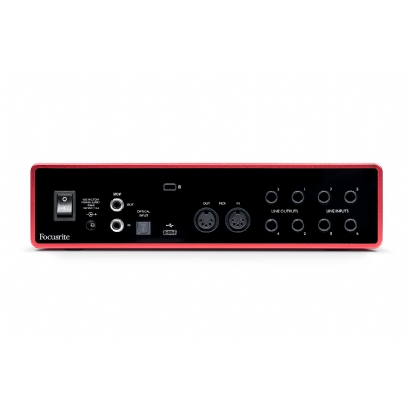 • 内置了四个Scarlett 系列至今为止性能最为强大的话放,并且带有可切换的Air效果模式,使得你可以录制出更加明亮且开阔的声音。 • 两个高动态余量的乐器输入端口支持吉他或贝斯的接入。 • 八个平衡线路输入端口适合鼓机/合成器或其他线路电平音源的接入。 • 内置高品质转换器可使你的录音和混音精度高达 24-bit/192kHz。 • 四个监听输出端口带抗噪技术和音箱切换功能。配送的软件: