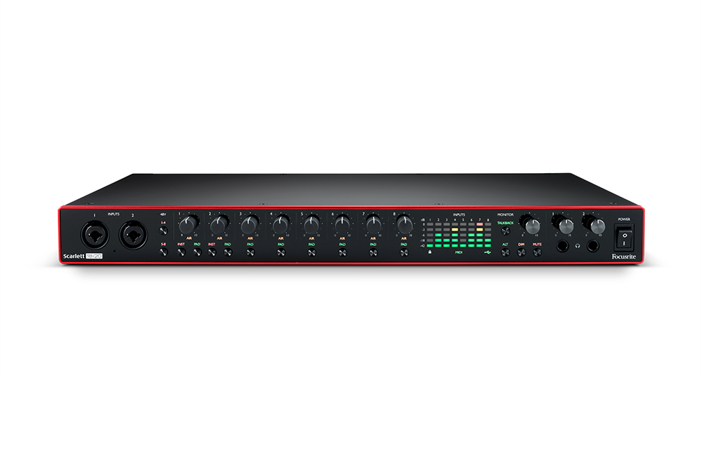 • 内置了八个Scarlett系列至今为止性能最为强大的话放,并且带有可切换的Air效果模式,使得你可以录制出更加明亮且宽广的声音。 • 内置高品质转换器可使你的录音和混音精度高达 24-bit/192kHz。 • 两个高动态余量的乐器输入端口支持吉他或贝斯的接入。 • 四个监听输出端口带抗噪技术和音箱切换功能,还内置了对讲功能。 • 八个平衡线路输入端口适合鼓机/合成器或其他线路电平音源的接入。配送的软件:
