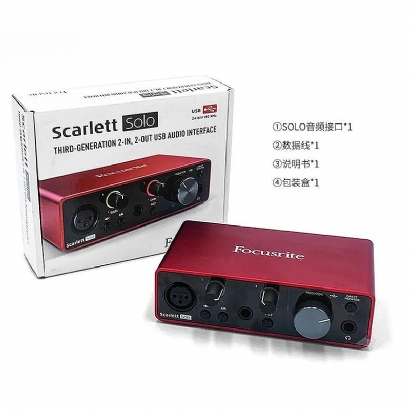 • 一个平衡线路输入端口 • 两个可实现无噪音回放的平衡输出端口 • 使用户的录音过程变得简单方便 • 十分适合唱作型音乐人 作为整个Scarlett系列最为简洁的型号,第三代的Scarlett Solo为音乐唱作人提供了简单便捷的录音过程。 配备了品质的24-bit/192kHz AD-DA转换器,确保了整个Scarlett系列一如既往的专业音质水平。 内置了一个升级后的第三代Scarlett话放:带有Air效果功能,可重现Focusrite ISA话放原型的声音特质,为你的人声和原声乐器录制带来更加明亮开阔的音质。 高动态余量的乐器输入端口支持吉他或贝斯的接入录制,无需担心过载或者失真。同时,带光环指示灯的增益旋钮方便你直观设置输入电平。Scarlett Solo的平衡输出端口连接工作室监听时没有任何“嗡声”,因此你将可以一直获得干净的音频回放效果。 Scarlett Solo的设计同时兼顾外出使用的需要,直接通过USB线连接Mac®或者PC电脑使用,无需外接电源。并且配送方便你开始使用该声卡所需的全部必要软件,其中包括两款综合性的数字音频工作站软件: Ableton® Live Lite™以及 Pro Tools® First Focusrite定制版。此外,还配送足够入门用户点燃创作热情的优质效果插件。 Focusrite和Splice合作为第三代Scarlett产品用户提供免费的三个月Splice Sounds订阅,而用户只需注册一个新的Splice账号即可。Splice Sounds提供数百万的采样和预设,并且每日发布你所喜欢的制作人/音效师/音乐人的作品。创作人可以使用Splice制作各类型音乐,包括:榜单流行歌曲, 格莱美专辑,电影配乐等等。 和其他Focusrite产品一样,Scarlett用户同样可以享有Plug-in Collective(插件集锦项目)定期更新的免费插件和插件购买优惠资格。 操作系统要求 - 可登录Focusrite官网查询该声卡对应的电脑系统要求: https://resource.focusrite.com/downloads/os