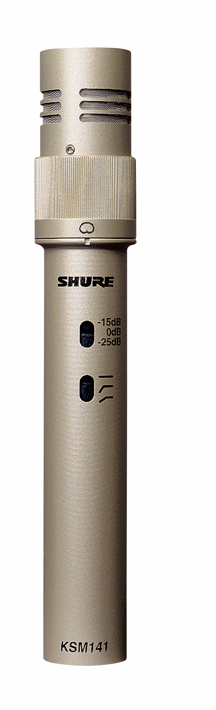 - KSM141双指向性乐器话筒可承受极高的声压级(SPL), 具有高输出电平、低本底噪声等特点,能重现高品质的低频声音。 KSM141可以切换拾音模式(全指向性和心形),具有三档可切换式衰减开关(0 dB、15 dB和25 dB),功能极为丰富,可用于录音室或现场演出。